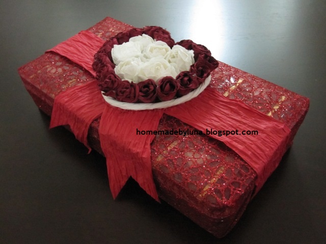 Hot sbb dia merah, pure sbb di dalam hati ada warna putih yg suci. Wah!~ Before ni, saya penah buat design yg sama mcm ni iaitu 2 Become 1. Saya buat skali lagi atas request cik Suzan from Putrajaya. On the top of choc, dia minta saya lukis love saje.